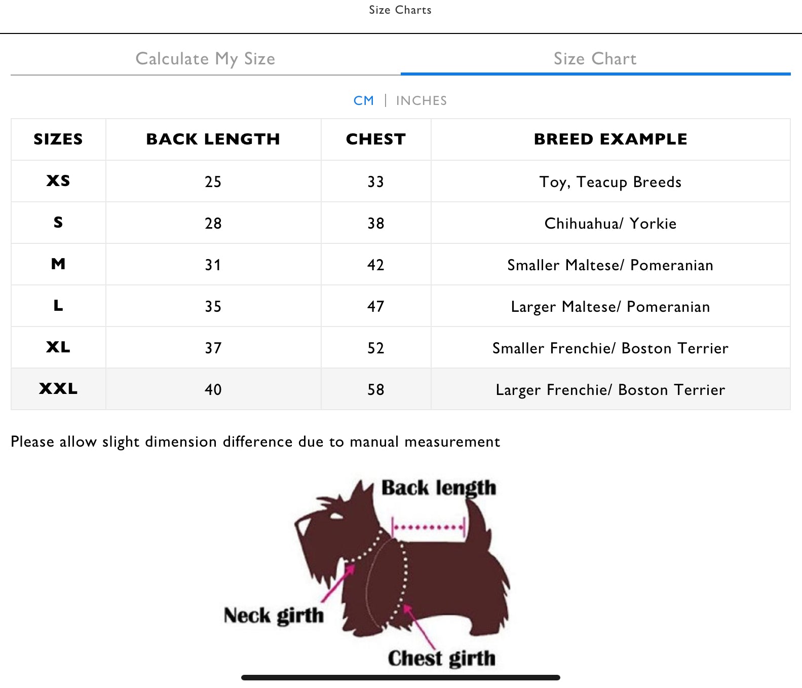Note: Most items have different sizing, please refer to the Size Chart provided above.